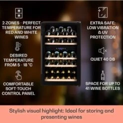 For all connoisseurs of fine wines: the Klarstein Shiraz 29 Duo wine refrigerator offers stylish storage space and ideal cooling for wine, sparkling wine and other drinks.