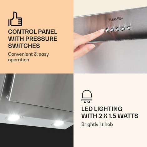 A MODE FOR BREAKFAST, LUNCH & TEA: With three modes to choose from, this stainless steel fan for kitchens with a powerful 347m³/h airflow rate has fan speed for every type of cooking. Let our vent hoods improve the air quality while removing odours.