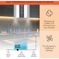 POWERFUL FAN FILTERS ALL FUMES: Across three power levels and a powerful 650m³/h our floating island cooker hoods reduce odours and filter fumes for better air quality. A handy auto-off timer switches the cooker hood off when not in use.