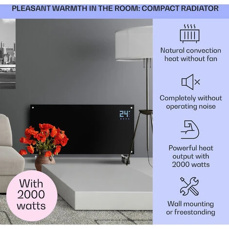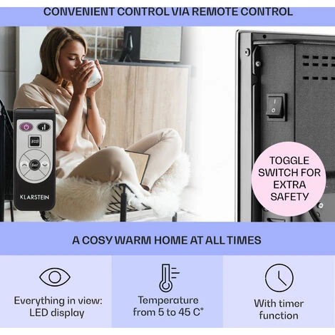 BRING WARMTH AND ELEGANCE INTO YOUR HOME: Our indoor electric heaters create cuddly feelings and a cosy warmth for slipper and pyjama wearers. The Klarstein 2000W low energy convector heater ensures an even distribution of heated air in any room.