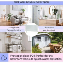 Heat in the bathroom & kitchen: Splash-proof with protection class IP24