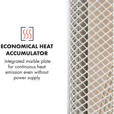 The mobile heat accumulator for chilly days! The Klarstein HeatPal Marble is a compact, easy-to-use electric heater that uses a highly efficient heat accumulator to keep heating even when it has long been switched off. The 1300 watt infrared heating element can be infinitely adjusted in its temperature output. The IR ComfortHeat technology makes use of the principle of solar heat. Targeted heating of illuminated objects and people without the diversions via air heating. And the whole thing without a fan: so operation is quiet and no dust is stirred up.