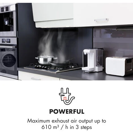 A MODE FOR BREAKFAST, LUNCH & TEA: With three modes to choose from, this stainless steel fan for kitchens with a powerful 607m³/h airflow rate has fan speed for every type of cooking. Let our vent hoods improve the air quality while removing odours.