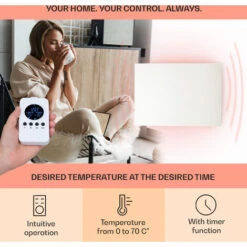 RETURN TO A WARM HOME: The remote control lets you set the desired temperature and includes an integrated thermostat. You can even program the infrared heater to turn on at certain times, so you can save energy and return to a warm, toasty home.