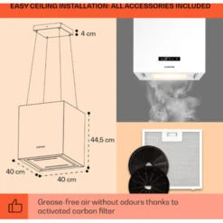 NO GREASE, OIL OR SMELLS: The kitchen extractor fan includes two aluminium grease filters to trap grease, oil and dust from the air, while activated charcoal carbon filters remove odours, smoke, and anything you don’t want to breathe.