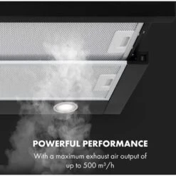 TheĀ flat screen hoodĀ can be easily and simply installed on base cabinets and, thanks to its compact design, leaves enough space for shelves and storage space for spices or cooking utensils. The bottom rail of the hood can be pulled out with just one handle in order to double the area of the fat filter and to quickly and effectively remove food smells, smoke and vapours with a maximum exhaust air output of 500 m3 / h. The exhaust air intensity of theĀ extractor hoodĀ can be controlled directly on the device using smooth-running push buttons. Two LED lights also guarantee an unrestricted view of the entire cooking process. To protect the interior of theĀ extractor hoodĀ and the exhaust air duct from contamination, the Mariana has two interchangeable and dishwasher-safe aluminium grease filters.