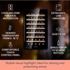 Klarstein Barossa 50 Uno Wine Refrigerator 1 Zone 120 Litres / 50 Bottles Touch Display