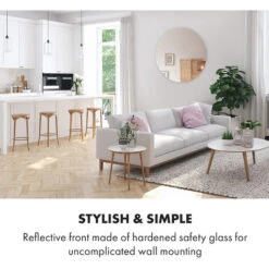 Mirror, mirror on the wall: the innovative Klarstein Marvel Mirror infrared heater is an efficient, fast heat source and practical wall mirror in one. The sophisticated heating panel warms you up immediately with healthy, pleasant infrared radiation and does not lose any heat in the ambient air. This makes your new electric heater extremely energy-efficient: a full 98 % of the absorbed power is converted into heat radiation. Sophisticated functions such as auto switch-off, OpenWindow Detection, thermostat and programmable weekly timer make the mirror with heating function an exclusive heat source that promises you long-lasting use in the bathroom thanks to its IP54 protection class.