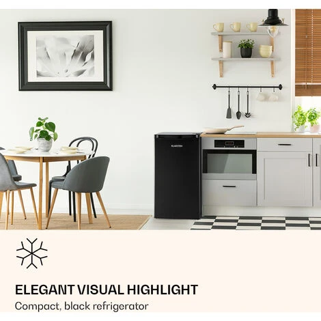 Black is beautiful! The Klarstein Obsidian refrigerator not only is compact, it also impresses with its extravagant design: It is entirely black – both outside and inside – and a real eye-catcher in the kitchen. With 90 litres of useful capacity, the Klarstein Obsidian refrigerator offers plenty of space for all kinds of food on 2 levels. Create your own unique arrangement with a glass shelf that can be used on three shelves depending on your storage requirements.