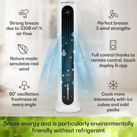 Maximum smart refreshment! TheĀ KlarsteinĀ Polar Tower SmartĀ 4-in-1 air coolerĀ brings precise cooling on hot summer days. As a fan, air cooler, humidifier and air purifier all in one, it ensures a refreshing flow of air and a cool head everywhere.