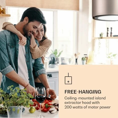 Free-hanging: ceiling-mounted island extractor hood with 200 watts motor power