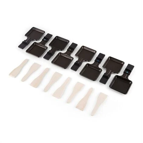 FULL SET FOR AUTHENTIC RACLETTE: Our raclette grill comes with everything you need for an authentic experience. This set includes 8 wooden spatulas and 8 small, easy to clean non-stick pans to serve raclette cheese and other delicious delights.